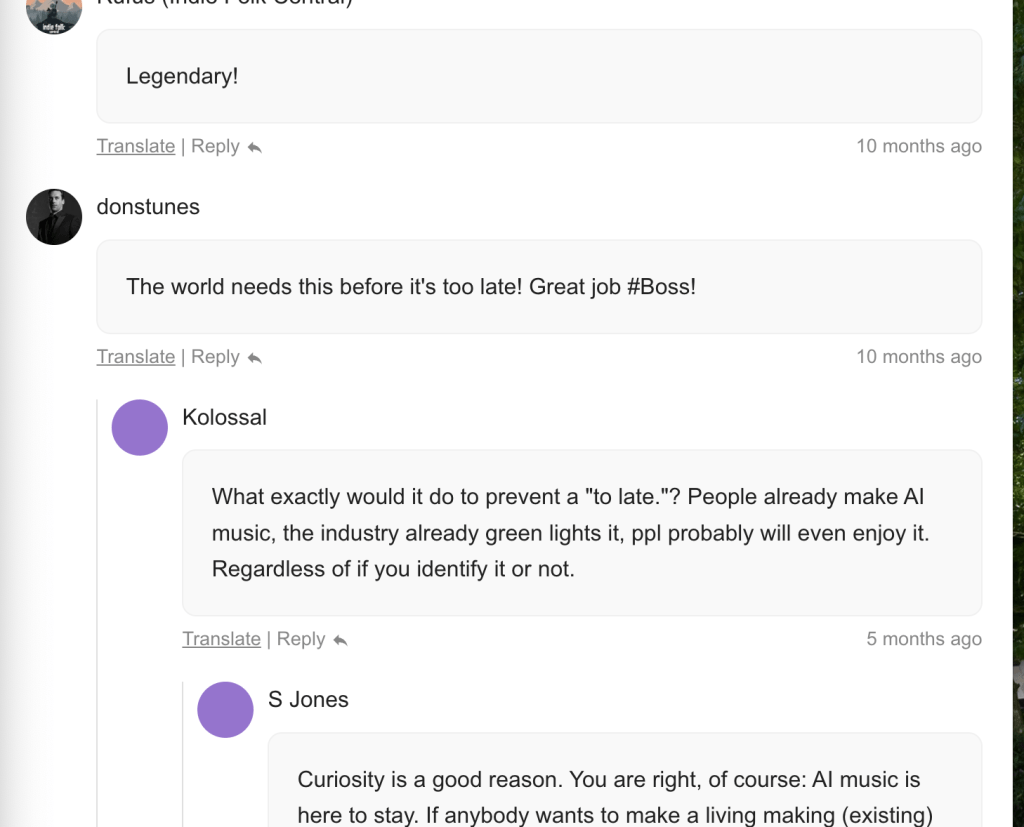 Maybe that’s why this affinity space exists. It shows a shared instinct among listeners: we want to know what’s real. We want to protect the texture of human emotion, the cracks in the voice, the imperfect lyrics, the stories behind the sound.