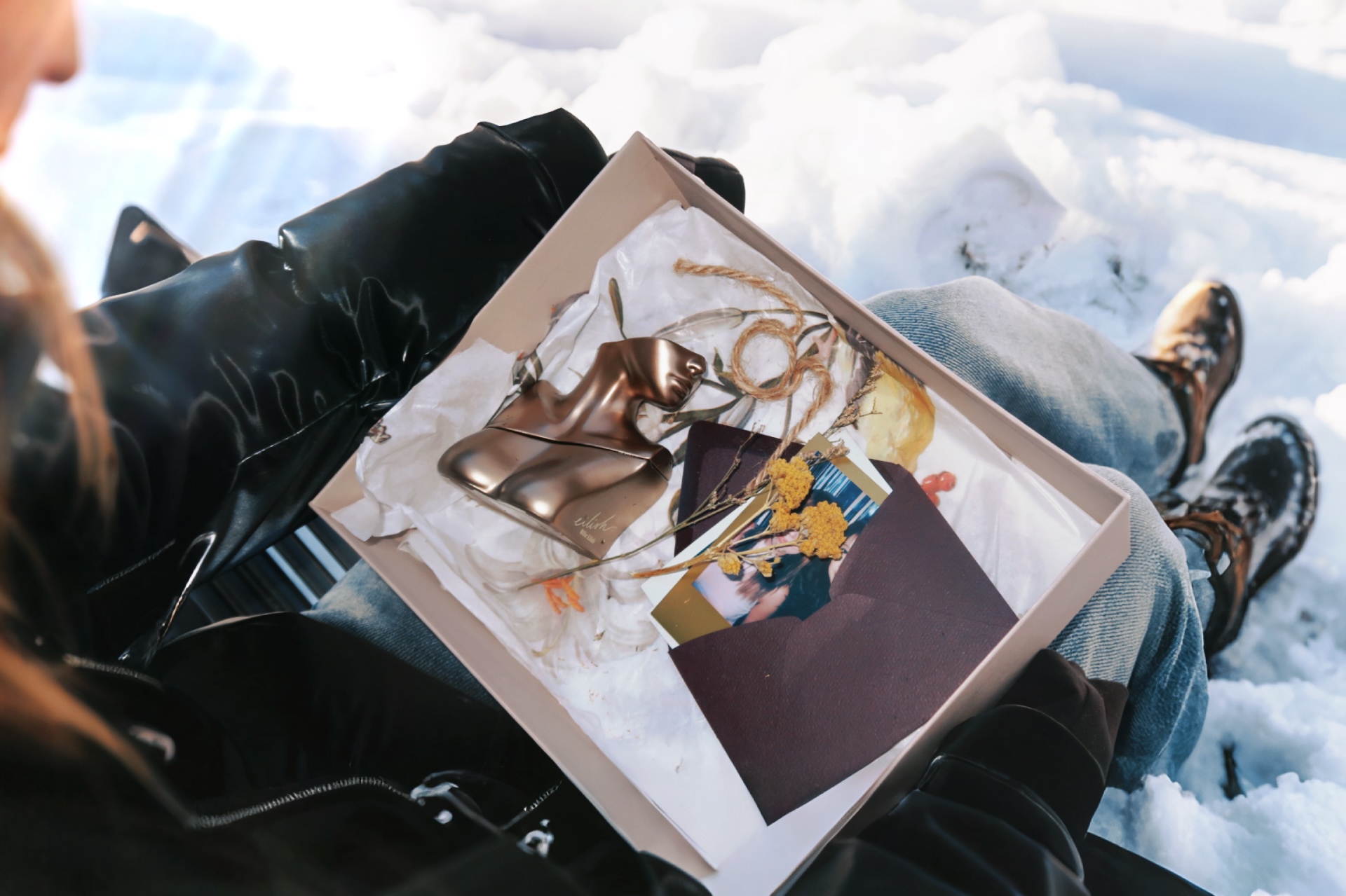 The three pictures in the snow are a combination of perfume and scene. I want it to exude a heartwarming feeling. Maybe it’s in the middle of a snowy winter, you’re sitting on a bench in the snow, and you’ve opened a package that was sent from afar. The scent carries warm, passionate memories with friends or lovers.
