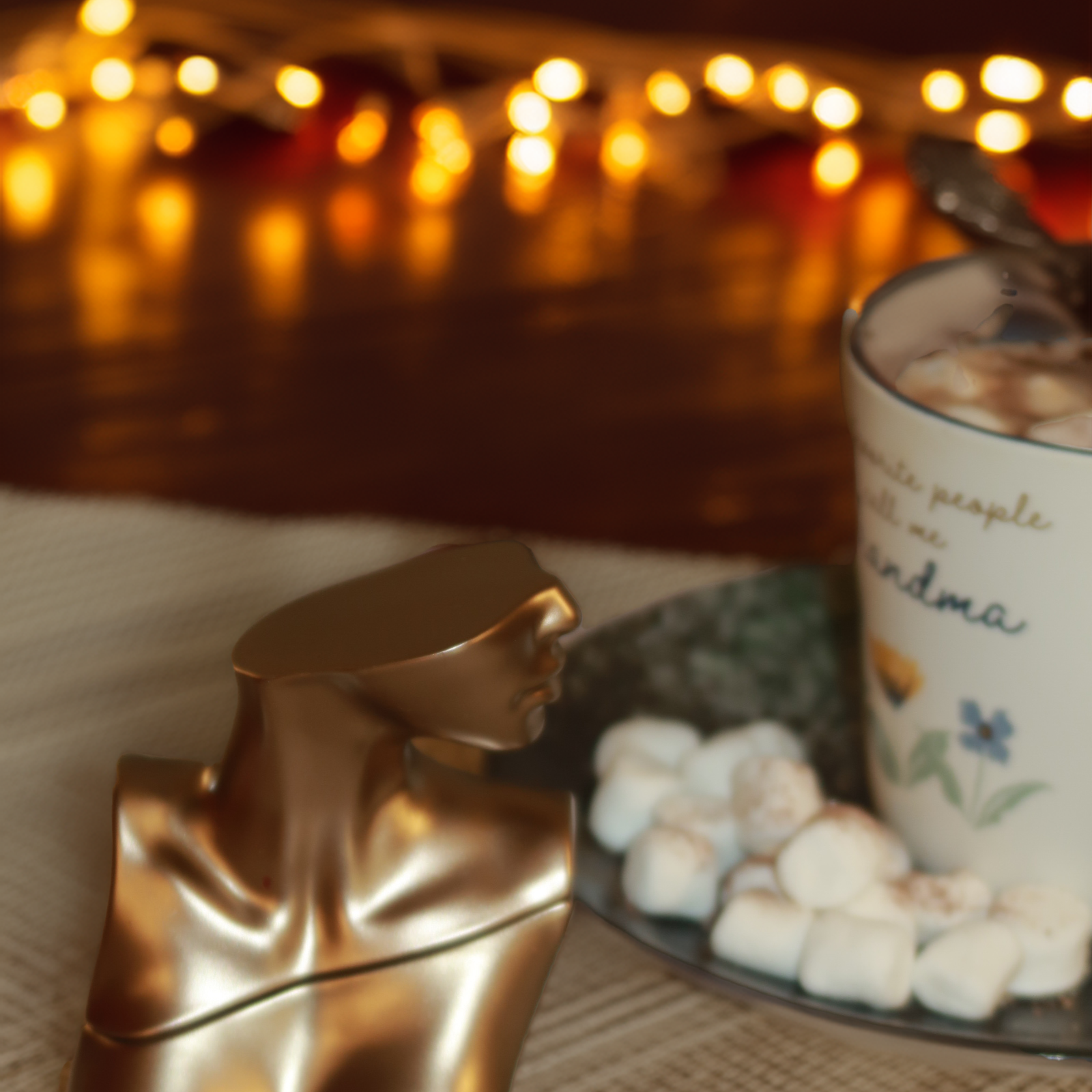 hot cocoa, marshmallows, with the smell of vanilla seeds in the silent flames, as you’re surrounded by a soft embrace.